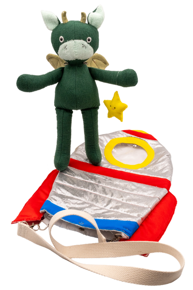 Zoomie is a brave little dragon who loves soaring into outer space adventures and dreams of galaxies far, far away! With curiosity as bright as the stars, Zoomie is always ready for takeoff—turning any room into a rocket ship and every moment into an outer space adventure.